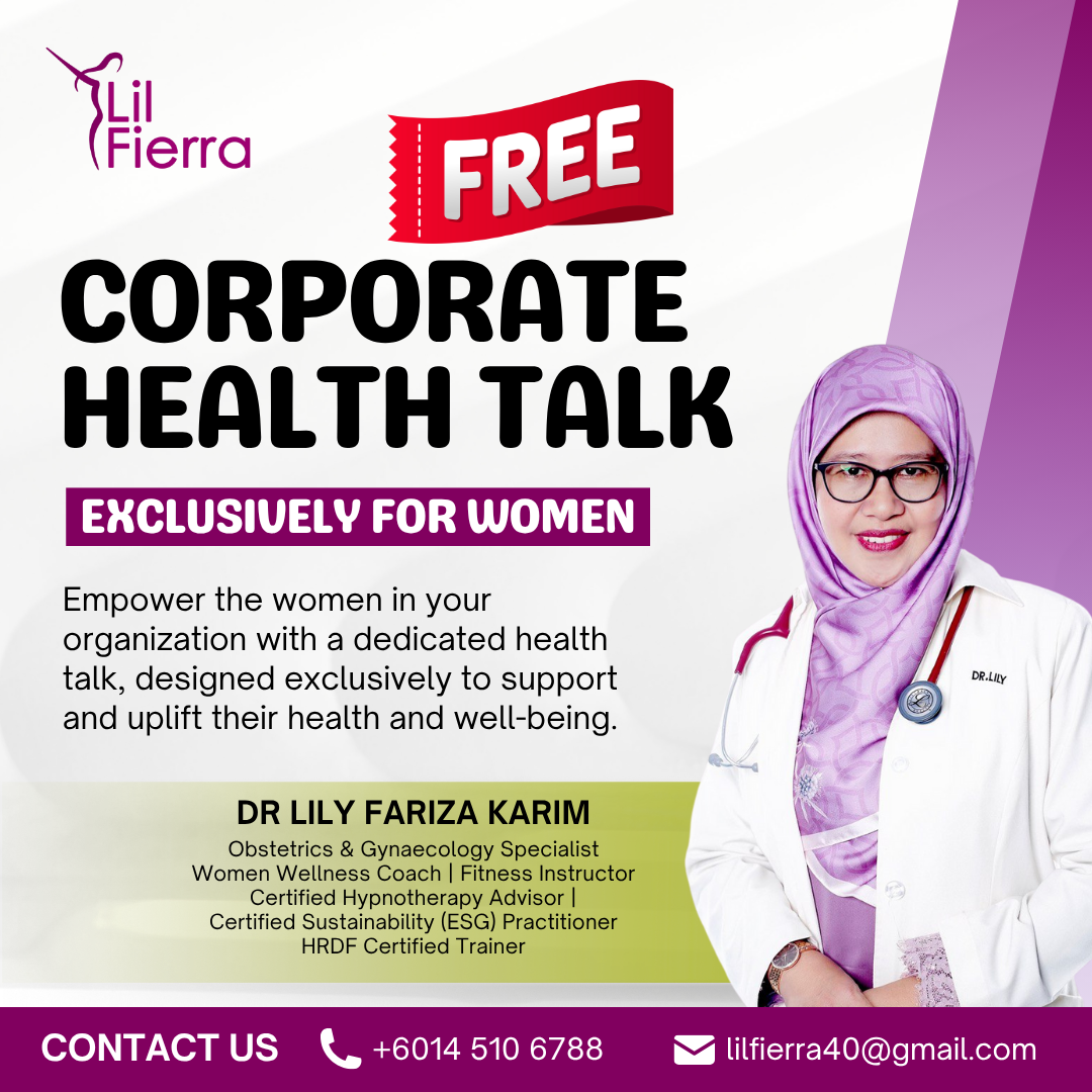 Support the women in your workplace with a complimentary health talk designed exclusively for them. Delivered by qualified professional, the talk aims to empower women with knowledge to take charge of their health—both at work and at home.