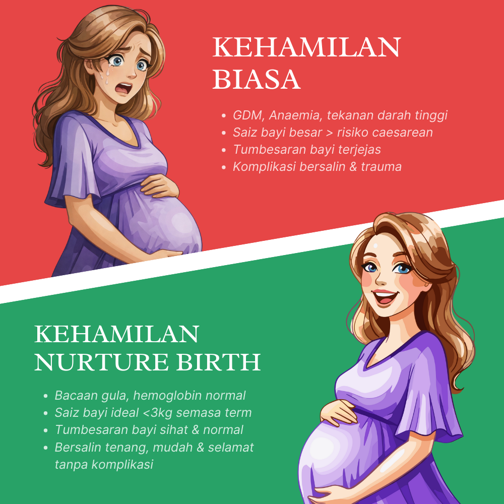 Nurture Birth memberi fokus menyeluruh — bukan sekadar teori, tetapi juga latihan praktikal, sokongan emosi, peranan pasangan, serta persediaan minda dan tubuh dari seawal proses kehamilan untuk pengalaman bersalin yang lebih tenang, mudah dan selamat.
