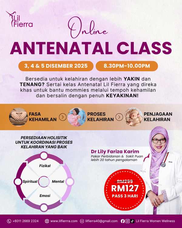 Kelas bersama Dr Lily sangat membantu utk persiapan menanti kelahiran. banyak saya belajar lebih-lebih lagi tentang “birth plan” which is perjalanan yg kita sendiri wish to happen dan yakin dgn kuasa Allah akan terjadi. Dr.Lily banyak membantu dari segi persiapan spiritual, mental, emosi & fizikal. Dr.Lily banyak menekankan bab-bab membentuk peribadi diri & bayi yg dikandung, bukan sahaja bekalan menghadapi kelahiran, malah dpt menjadi bekalan menuju akhirat.